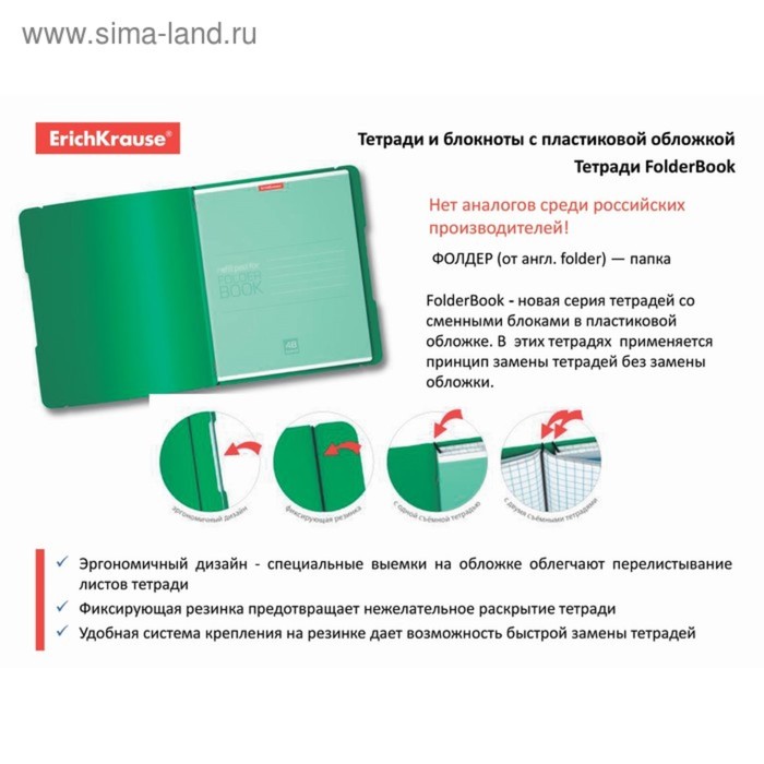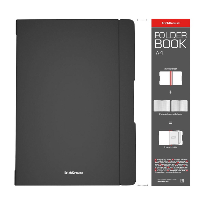 Тетрадь А4, 96 листов в клетку, ErichKrause FolderBook, съёмная пластиковая обложка, чёрная — Характеристики