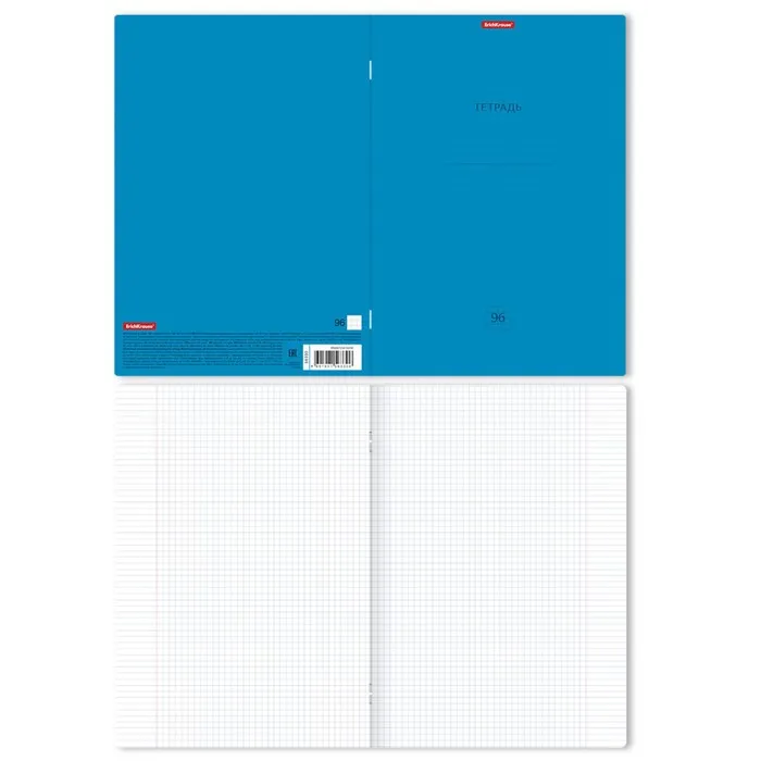 Тетрадь А4, 96 листов в клетку ErichKrause «Классика Neon», обложка мелованный картон, блок офсет 100% белизна, голубая — Характеристики