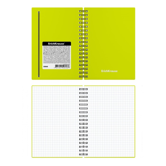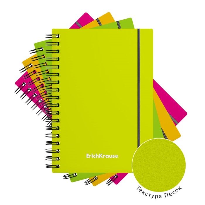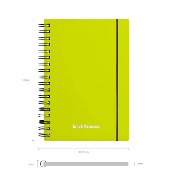 Тетрадь А6 на спирали, 80 листов в клетку, ErichKrause Neon, пластиковая обложка, на резинке, МИКС — Характеристики