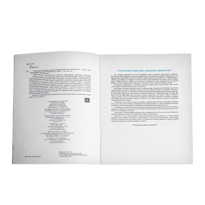 Тетрадь для обучения грамоте детей дошкольного возраста №2, Нищева Н.В., 2022 — Характеристики