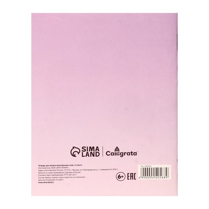 Тетрадь - словарик для записи английских слов, идеальный инструмент для изучения иностранных языков. Состоящий из 24 страниц, формата А6. Словарь представляет собой тетрадь с яркой обложкой, разлинованную на специальные столбики: слово, транскрипция, перевод. Тетрадь - словарь поможет быстрее выучить язык и запомнить иностранные слова. Он подходит как для изучения английского, так и немецкого языка. Благодаря удобной форме записи, вы сможете легко и быстро находить нужные слова и фразы. В качестве бонуса в словаре есть странички со справочными материалами.