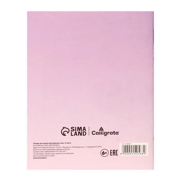 Тетрадь для записи иностранных слов А6 24 листа Big Ben, обложка мелованный картон, блок офсет 65 г/м² — Характеристики