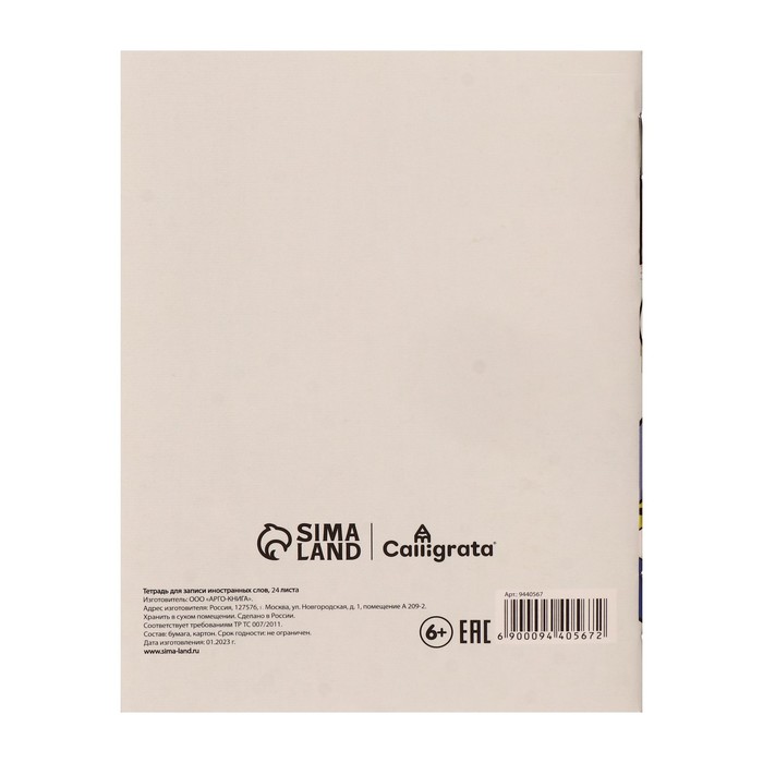 Тетрадь - словарик для записи английских слов, идеальный инструмент для изучения иностранных языков. Состоящий из 24 страниц, формата А6. Словарь представляет собой тетрадь с яркой обложкой, разлинованную на специальные столбики: слово, транскрипция, перевод. Тетрадь - словарь поможет быстрее выучить язык и запомнить иностранные слова. Он подходит как для изучения английского, так и немецкого языка. Благодаря удобной форме записи, вы сможете легко и быстро находить нужные слова и фразы. В качестве бонуса в словаре есть странички со справочными материалами.
