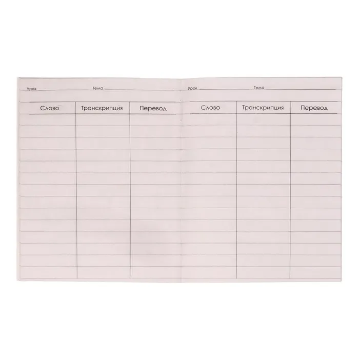 Тетрадь - словарик для записи английских слов, идеальный инструмент для изучения иностранных языков. Состоящий из 24 страниц, формата А6. Словарь представляет собой тетрадь с яркой обложкой, разлинованную на специальные столбики: слово, транскрипция, перевод. Тетрадь - словарь поможет быстрее выучить язык и запомнить иностранные слова. Он подходит как для изучения английского, так и немецкого языка. Благодаря удобной форме записи, вы сможете легко и быстро находить нужные слова и фразы. В качестве бонуса в словаре есть странички со справочными материалами.