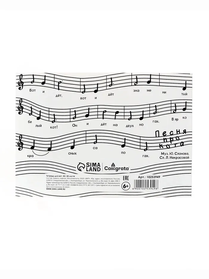 Тетрадь д/нот А5 24л Котоноты — Характеристики