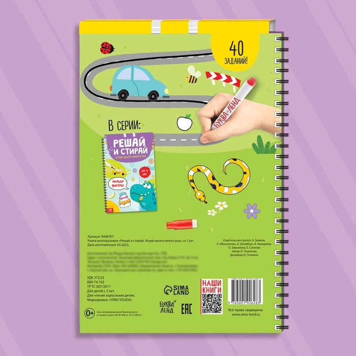 Многоразовая тетрадь с развивающими заданиями — это идеальный помощник для малышей от 2 лет, которые только начинают познавать мир. Формат А4 удобен для использования, а 40 страниц с увлекательными заданиями помогут развить моторику и расширить знания об окружающем мире. Тетрадь рассчитана на многократное использование, что делает её практичным и экономичным выбором для родителей.