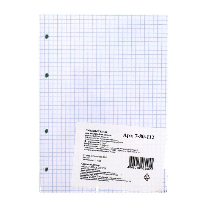 Тетрадь на кольцах A5 120 листов в клетку Calligrata «Мрамор светлый», обложка 7БЦ, без вырубки под кольца, блок офсет — Характеристики