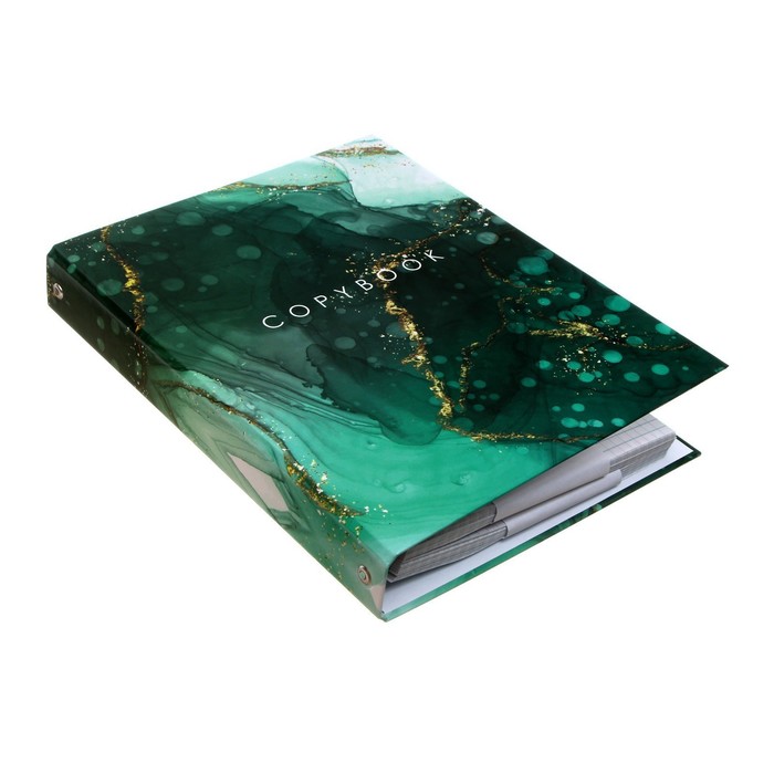Тетрадь на кольцах A5 160 листов в клетку Calligrata «Зелёный мрамор», обложка 7БЦ, без вырубки под кольца, блок офсет — Характеристики