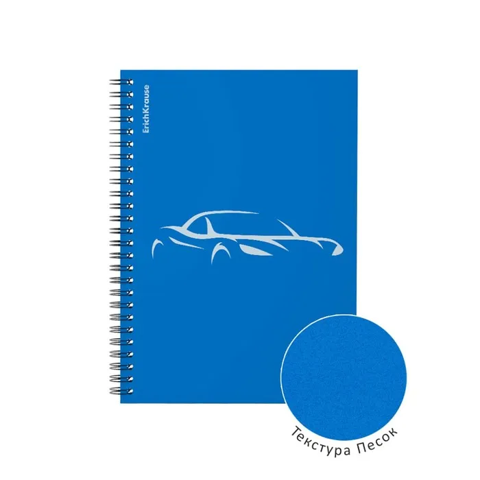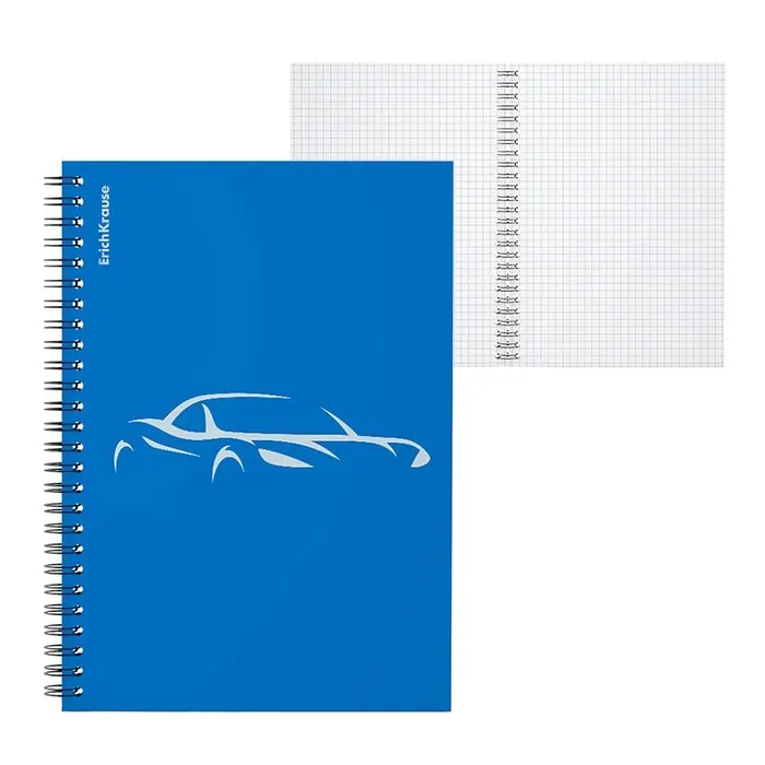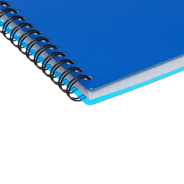 Тетрадь общая формата А5 (148x210 мм). Обложка из высококачественного износостойкого пластика с фактурой "песок". В блоке 80 листов в клетку. Бумага офсетная плотностью 60 г/м2. Цвет линовки - синий. Скругленные уголки обложки. Тип скрепления - спираль. Тетради упакованы в термоусадочную пленку по 4 штуки.