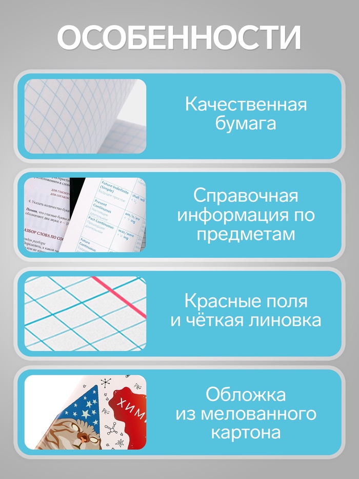Тетрадь предметная, 36 листов в клетку, Calligrata «Животные мемы. Химия», серые листы — Характеристики