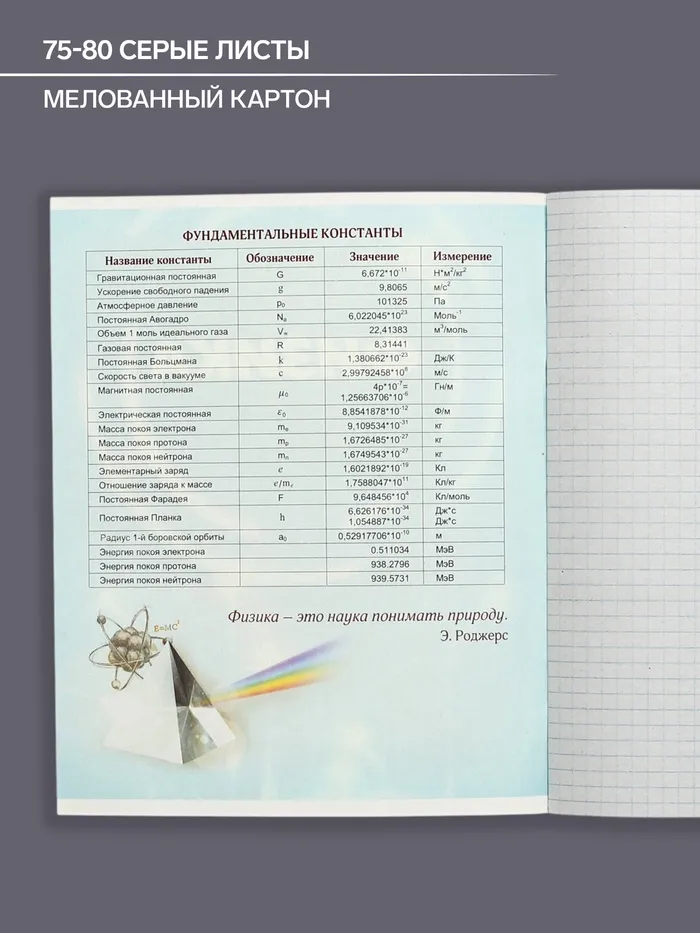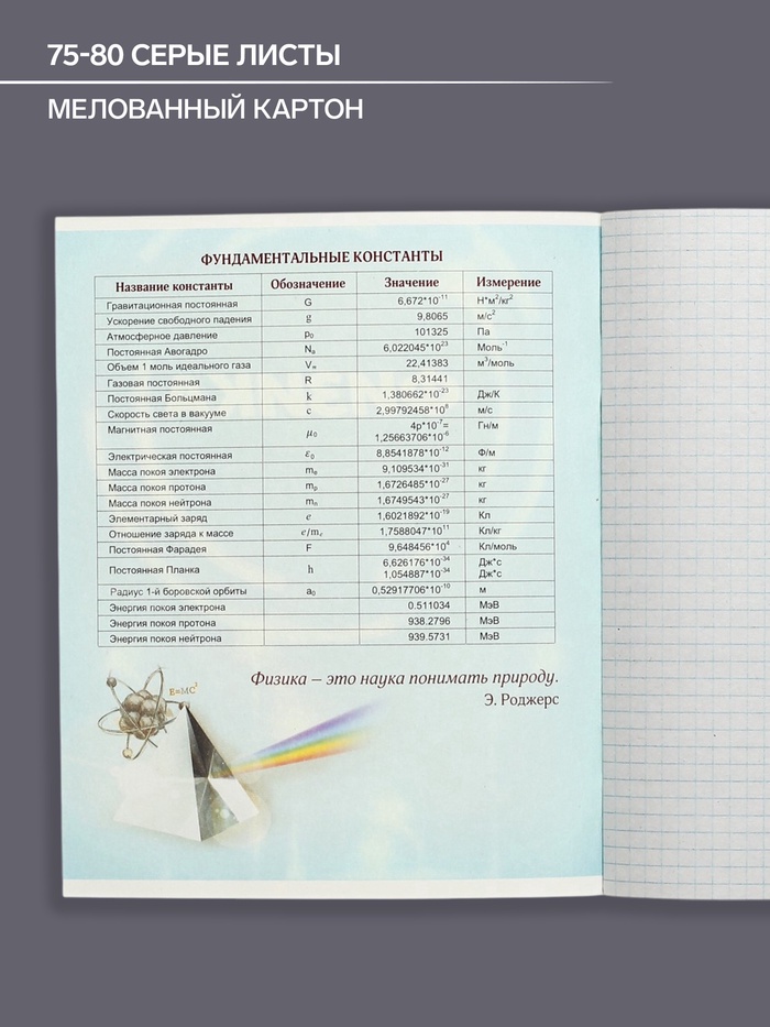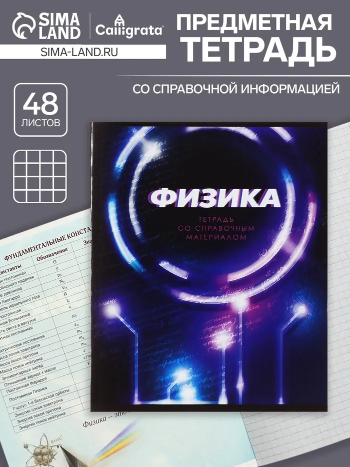 Тетрадь предметная 48 листов в клетку Calligrata «3D. Физика», серые листы — Характеристики