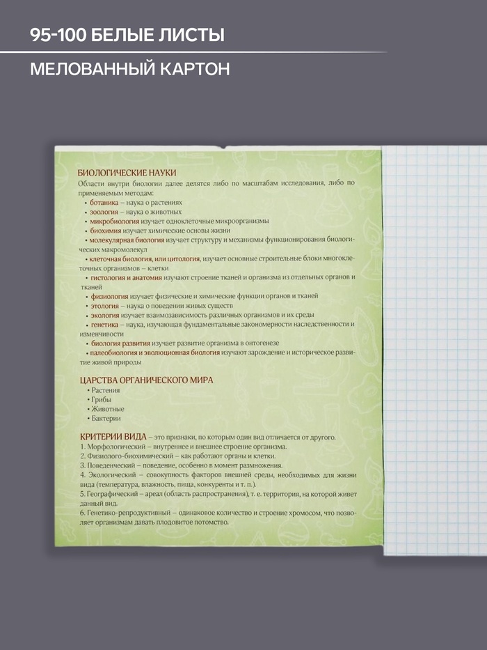 Тетрадь предметная 48 листов в клетку Calligrata, «Биология», обложка мелованный картон — Характеристики