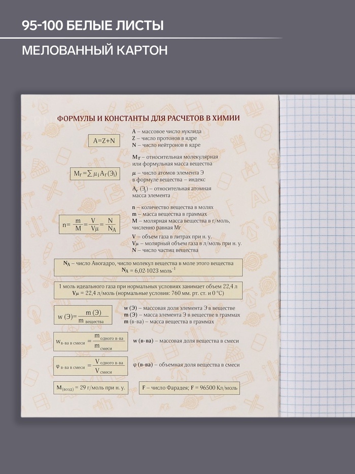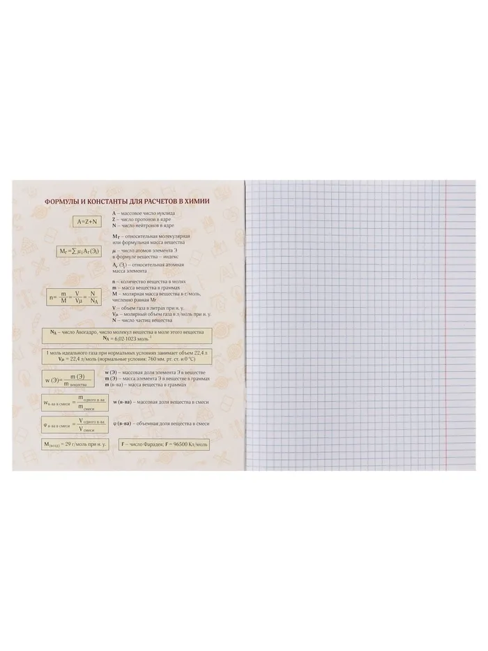 - Оптимальный формат A5: Компактная тетрадь легко помещается в сумку или рюкзак, она всегда будет под рукой в нужный момент. Каждый лист готов для записей любых химических формул и реакций.