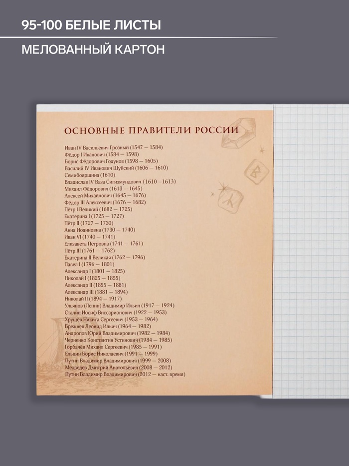 Тетрадь предметная 48 листов в клетку Calligrata, «История», обложка мелованный картон — Характеристики