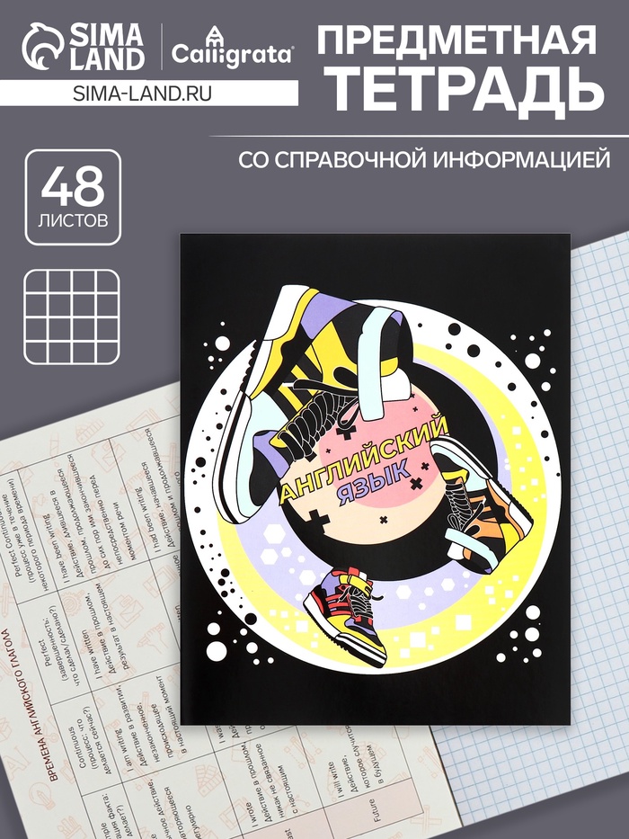 Тетрадь предметная 48 листов в клетку Calligrata, «Кеды. Английский язык», картонная обложка — Характеристики