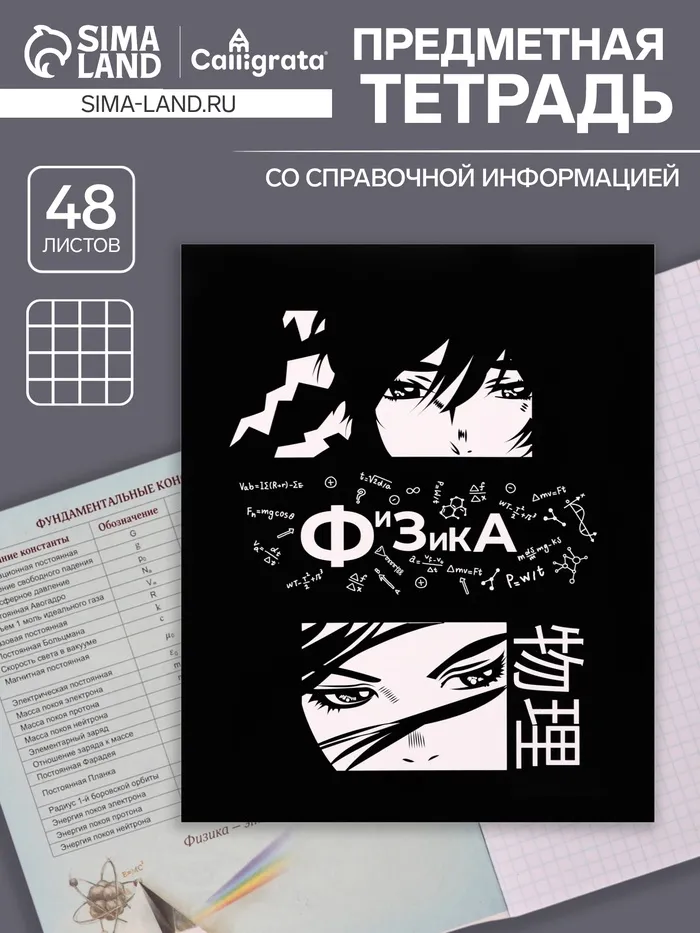 Тетрадь предметная 48 листов в клетку Calligrata, «Комикс Аниме. Физика», обложка мелованный картон — Характеристики