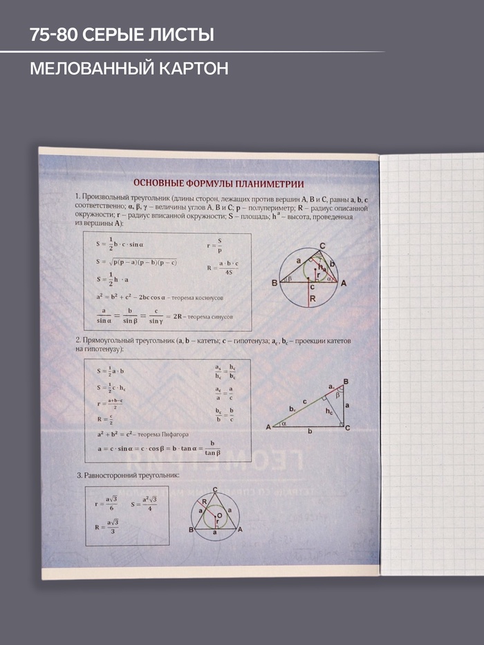 Тетрадь предметная 48 листов в клетку Calligrata, «Металл. Геометрия», обложка мелованный картон, серые листы — Характеристики