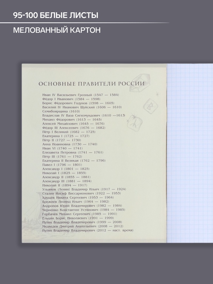 Тетрадь предметная 48 листов в клетку Calligrata, «Мрамор светлый. История», обложка мелованный картон — Характеристики