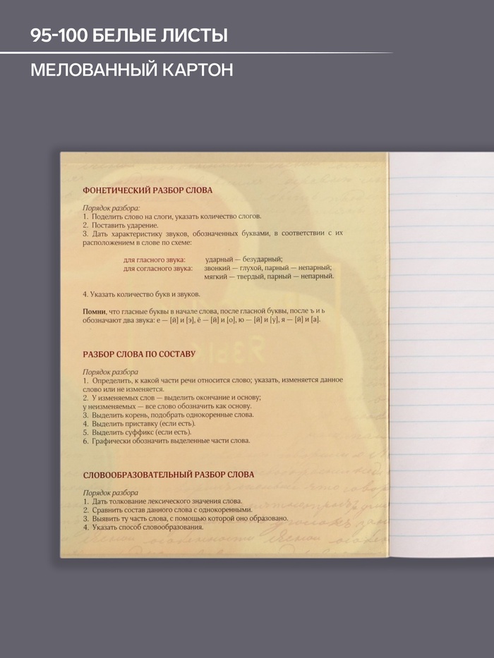 Тетрадь предметная 48 листов в клетку Calligrata, «Мрамор светлый. Русский язык», обложка мелованный картон — Характеристики