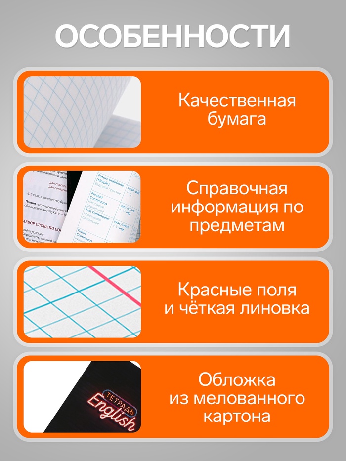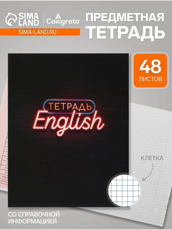 Тетрадь предметная, 48 листов в клетку Calligrata «Неон. Английский язык» — Характеристики