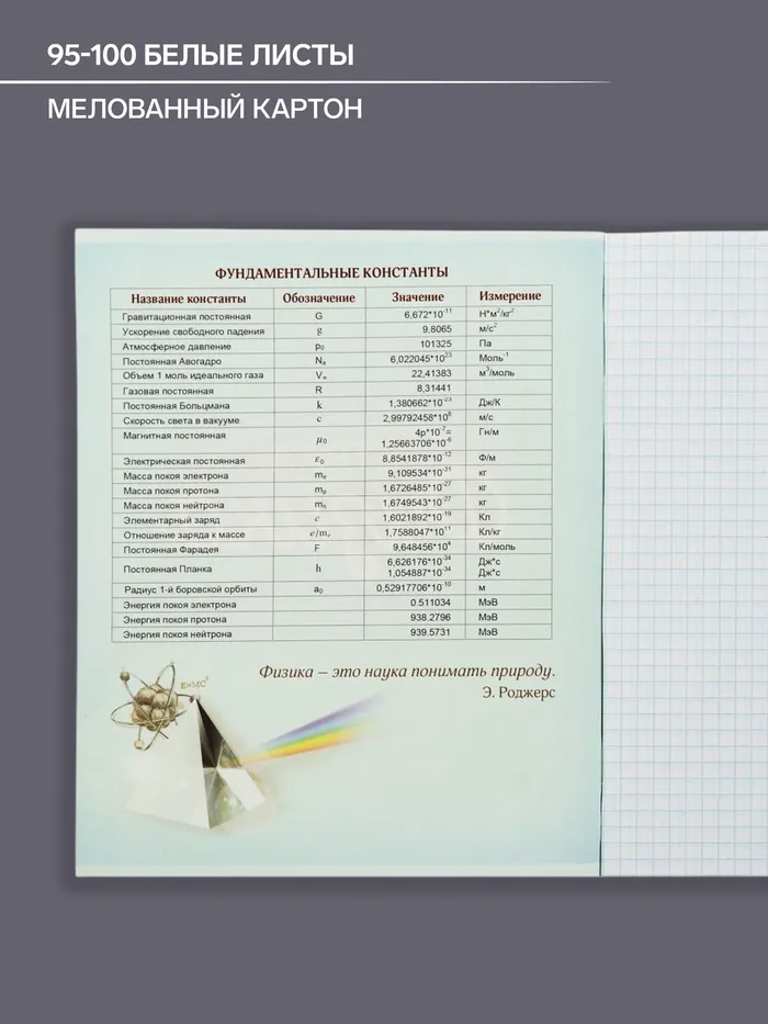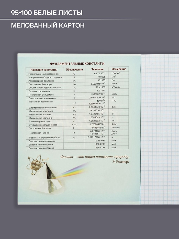 Тетрадь предметная 48 листов в клетку Calligrata, «Неон. Физика», со справочным материалом, обложка мелованный картон, УФ-лак, блок офсет — Характеристики