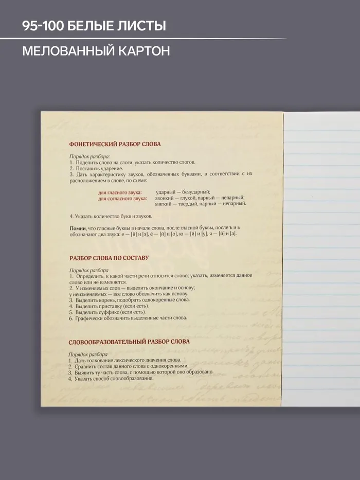 Тетрадь предметная 48 листов в клетку Calligrata, «Неон. Русский язык», со справочным материалом, обложка мелованный картон, УФ-лак, блок офсет — Характеристики