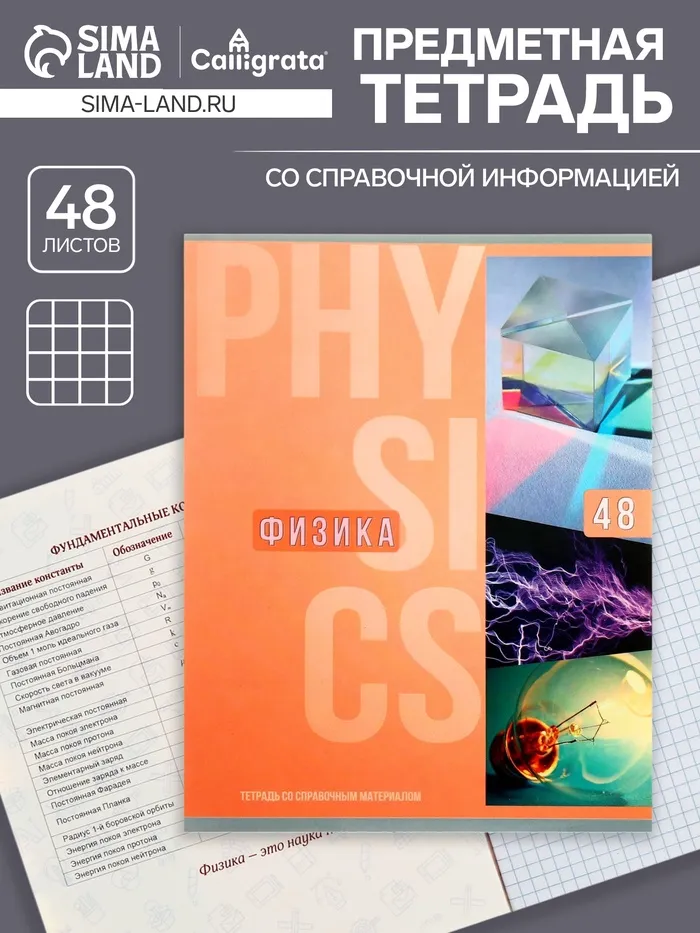 Тетрадь предметная 48 листов в клетку Calligrata, «Полоса. Физика», обложка мелованный картон — Характеристики