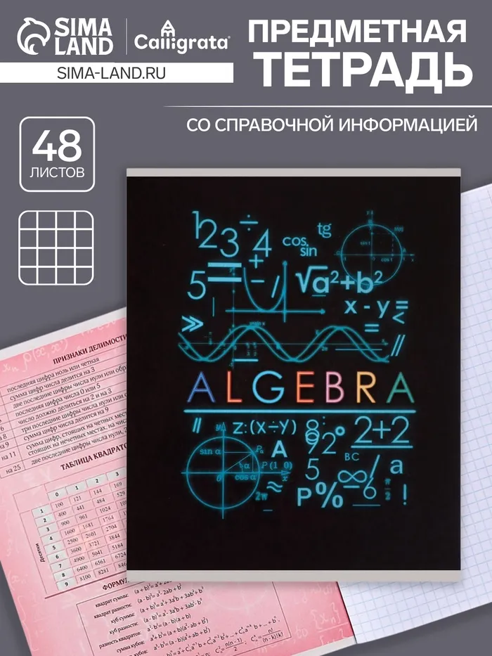 Тетрадь предметная 48 листов в клетку Calligrata, «СуперНеон. Алгебра», обложка мелованный картон — Характеристики