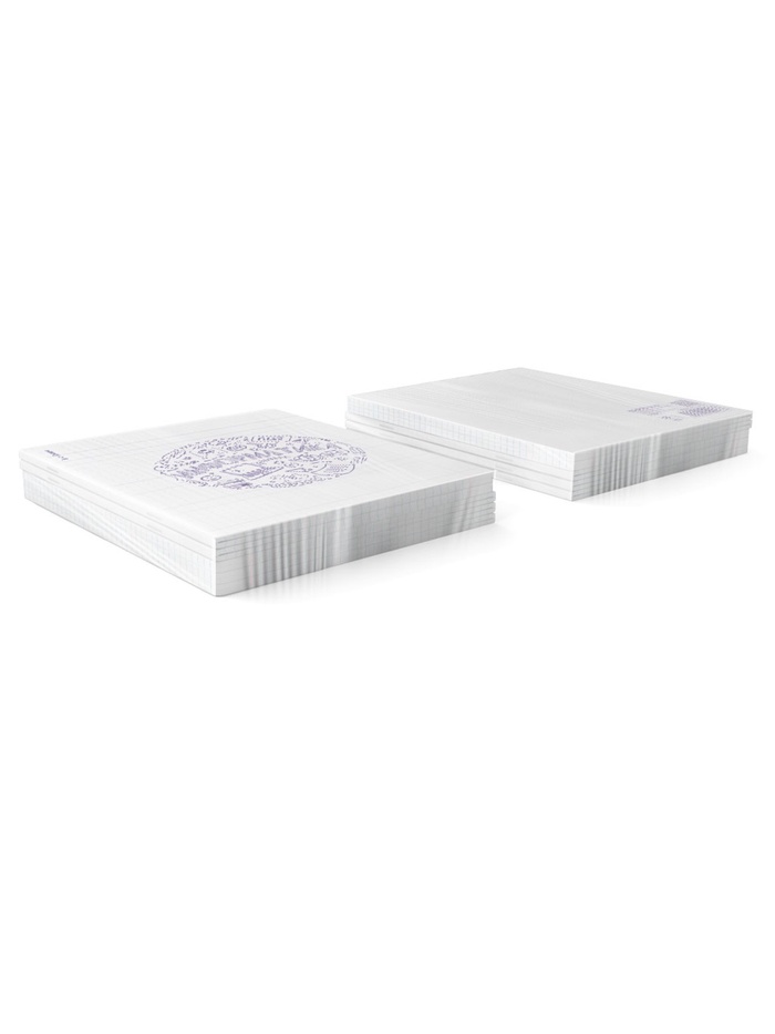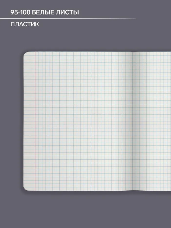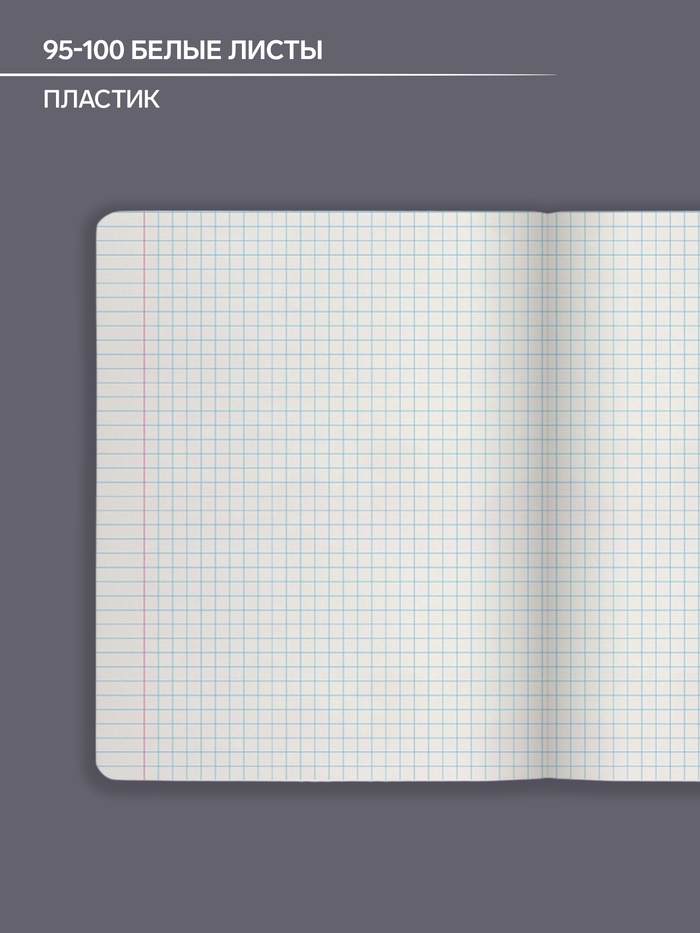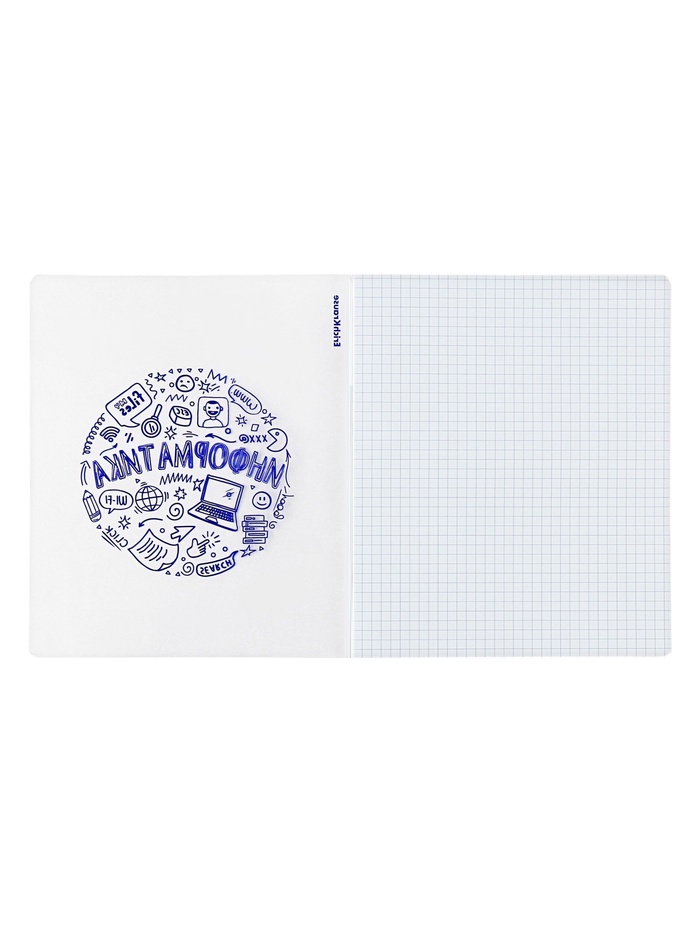 Тетрадь предметная формата А5+ (170x203 мм). Обложка выполнена из высококачественного износостойкого прозрачного пластика с фактурой «песок». В блоке 48 листов в клетку с полями. Бумага офсетная плотностью 60 г/м2. Белизна бумаги - 100%. Цвет линовки - синий. Скругленные уголки обложки и блока. Тип скрепления - скоба. Тетради упакованы в термоусадочную плёнку по 5 штук.