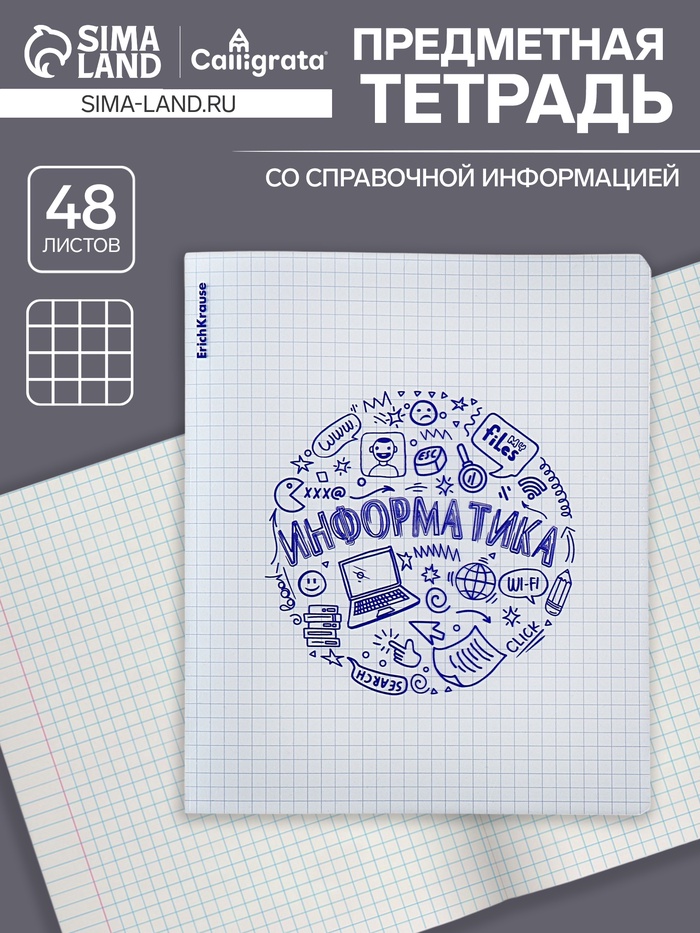 Тетрадь предметная 48 листов в клетку ErichKrause Chaos «Информатика», пластиковая обложка — Характеристики
