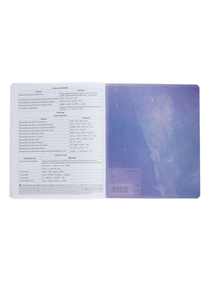 Тетрадь предметная формата А5+ (170х203 мм). Обложка из высококачественного мелованного картона плотностью 190 г/м2. Отделка - твин-лак. В блоке 48 листов в клетку с полями. Бумага офсетная плотностью 60 г/м2. Белизна бумаги - 100%. Цвет линовки - синий. Скругленные уголки обложки и блока. Тип скрепления - скоба. Имеет дополнительный лист с инфо-блоком с кратким изложением школьной программы. Тетради упакованы в термоусадочную плёнку по 5 штук.
