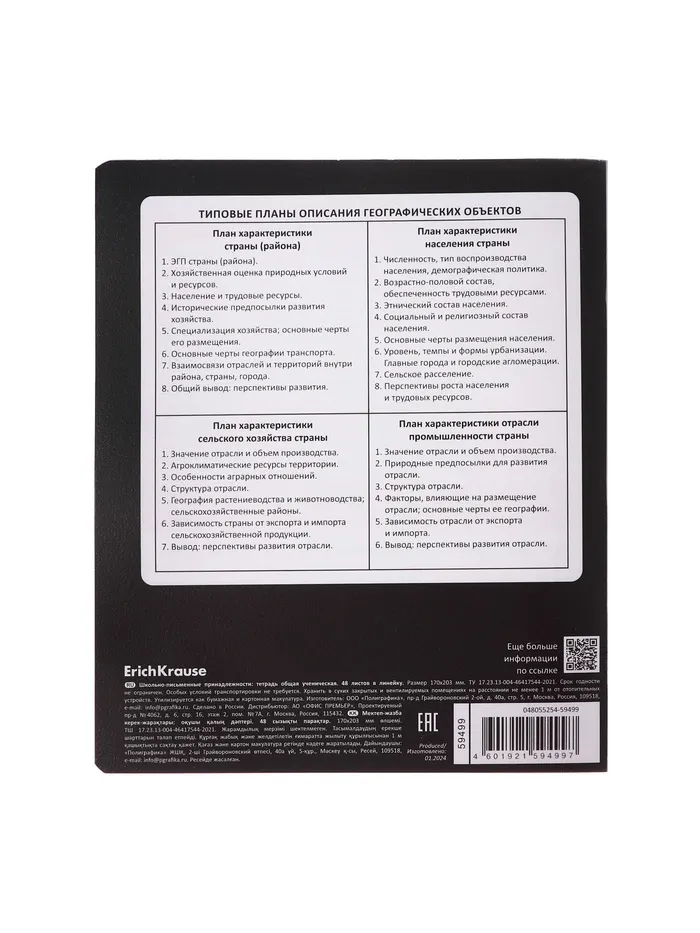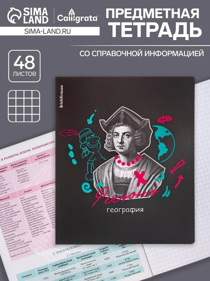 Тетрадь предметная 48 листов в клетку ErichKrause Persons «География», обложка мелованный картон — Характеристики