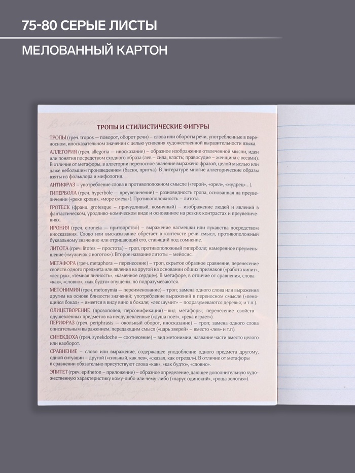 Тетрадь предметная 48 листов в линейку Calligrata «3D. Литература», серые листы — Характеристики
