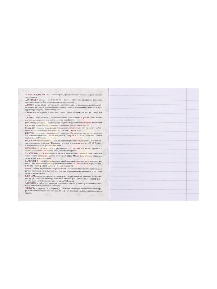 - 48 листов в линейку: Оптимальный объем для конспектов, сочинений и заметок. Листы с высокой белизной 95-100% обеспечивают комфорт для глаз, а линейка помогает аккуратно вести записи.