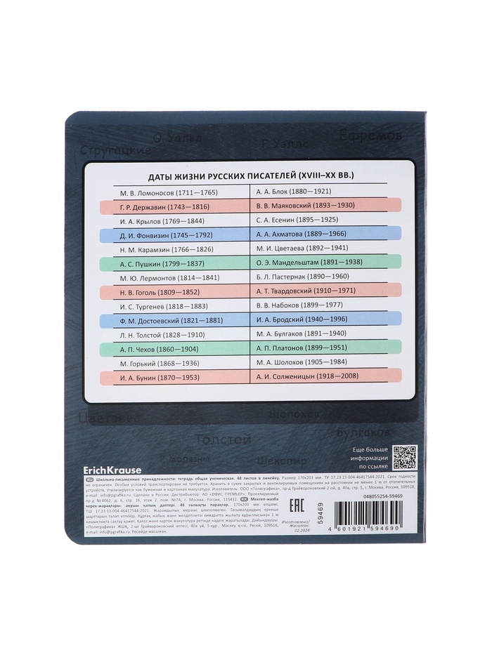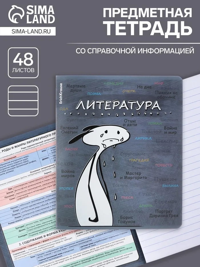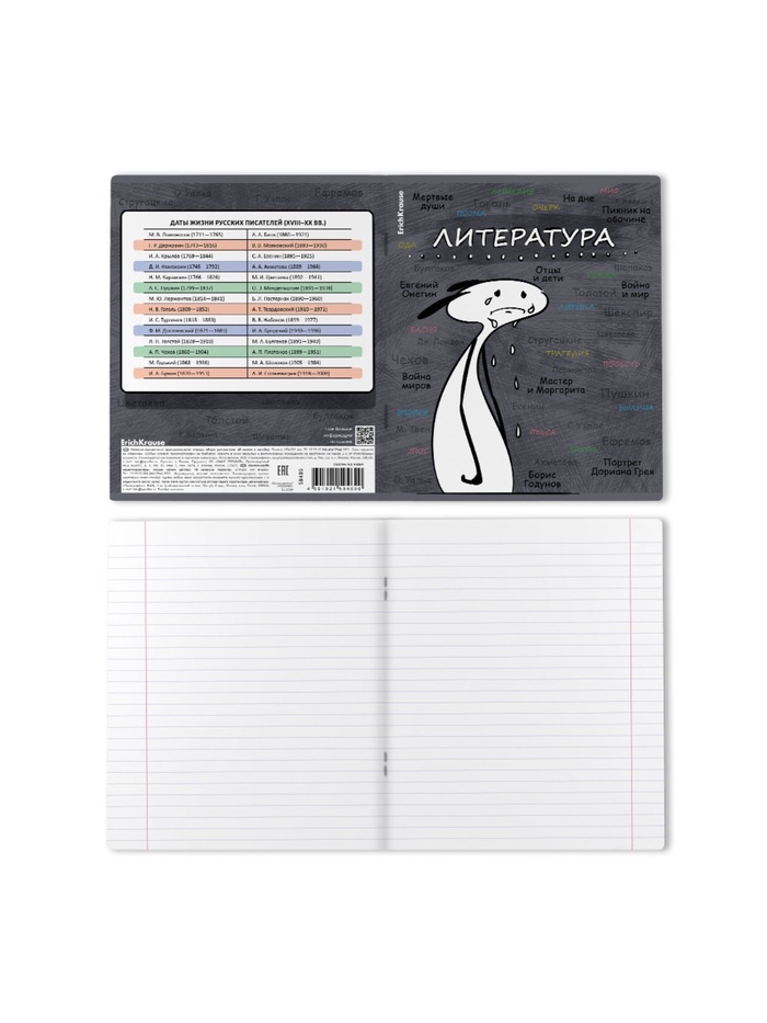 Тетрадь предметная 48 листов в линейку, ErichKrause «Чубрик. Литература», пластиковая обложка — Характеристики