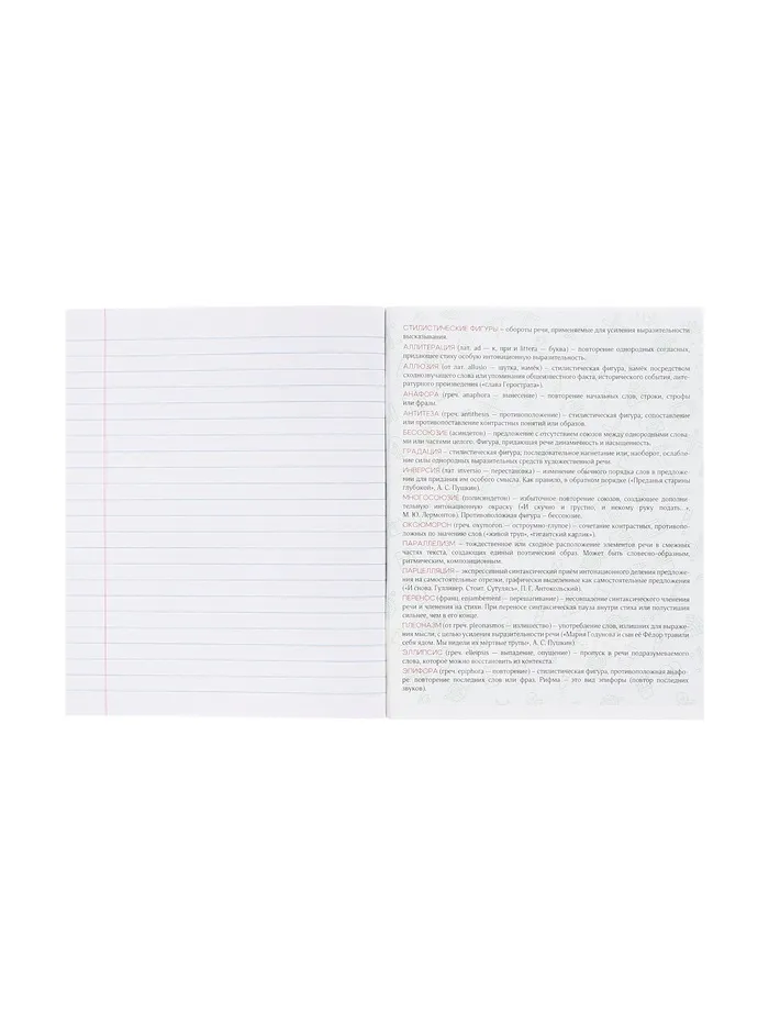 - Полезные справочные материалы: Тетрадь оснащена дополнительным справочным материалом, помогающим учащимся погрузиться в изучение литературы, что делает ее не только инструментом для записей, но и спутником в учебе.