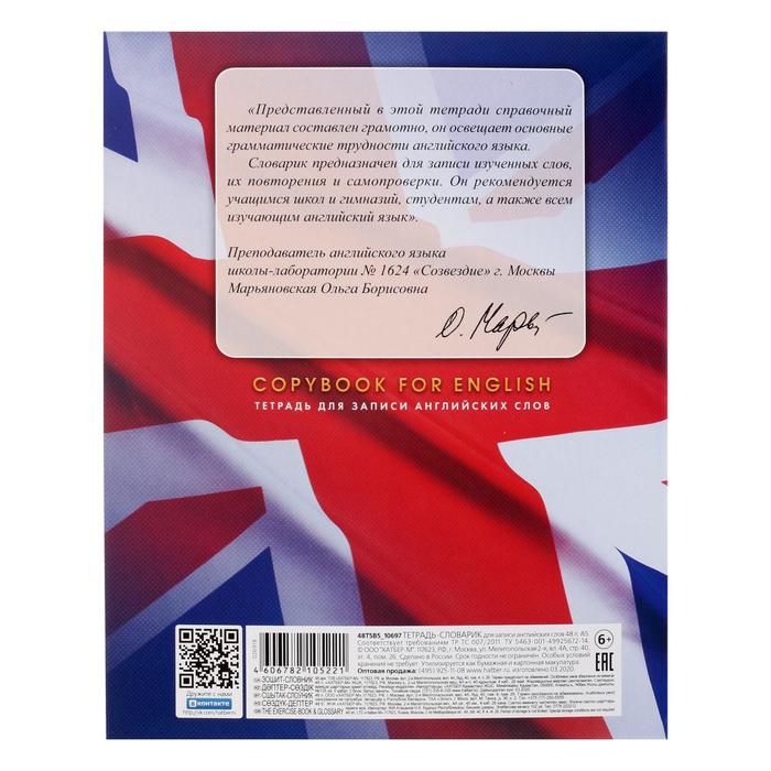Тетрадь - словарь для записи иностранных слов 48 листов, «Английский флаг», со справочной информацией — Характеристики
