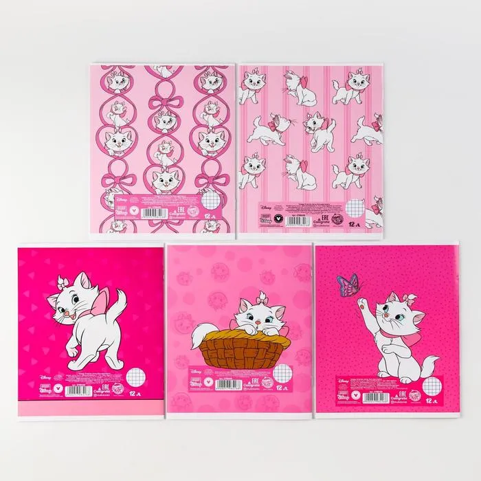 Тетрадь в клетку 12 листов, 5 видов МИКС, обложка мелованный картон, Коты Аристократы — Характеристики