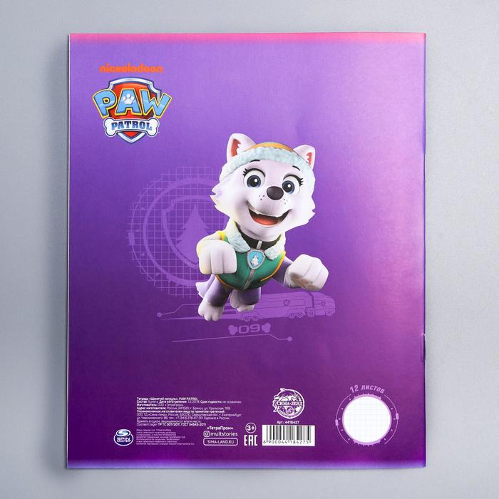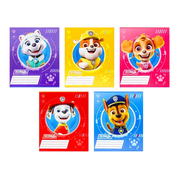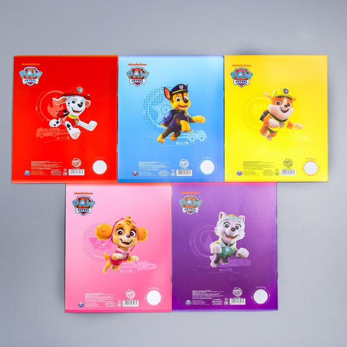 Тетрадь в клетку 12 листов, 5 видов МИКС, обложка мелованный картон, «Щенячий патруль» — Характеристики