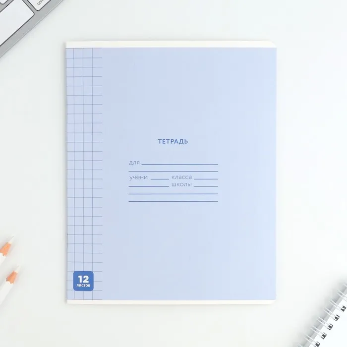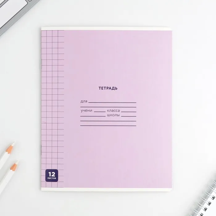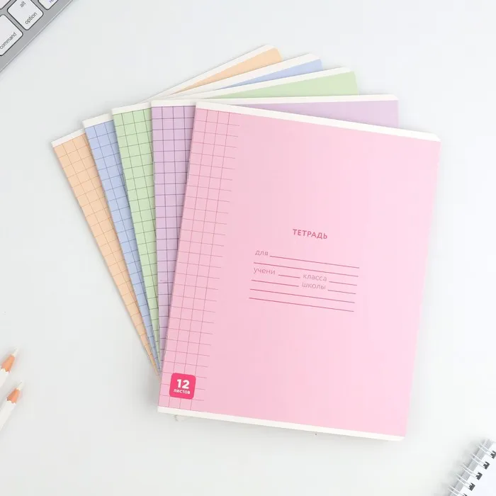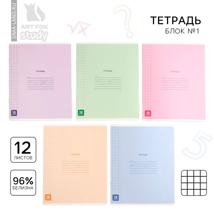 Тетрадь в клетку, 12 листов, А5, на скрепке, блок №1 «Минимализм» МИКС — Характеристики