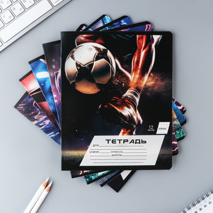 Тетрадь в клетку, 12 листов, А5, на скрепке, блок №2 «Мяч»,МИКС — Характеристики