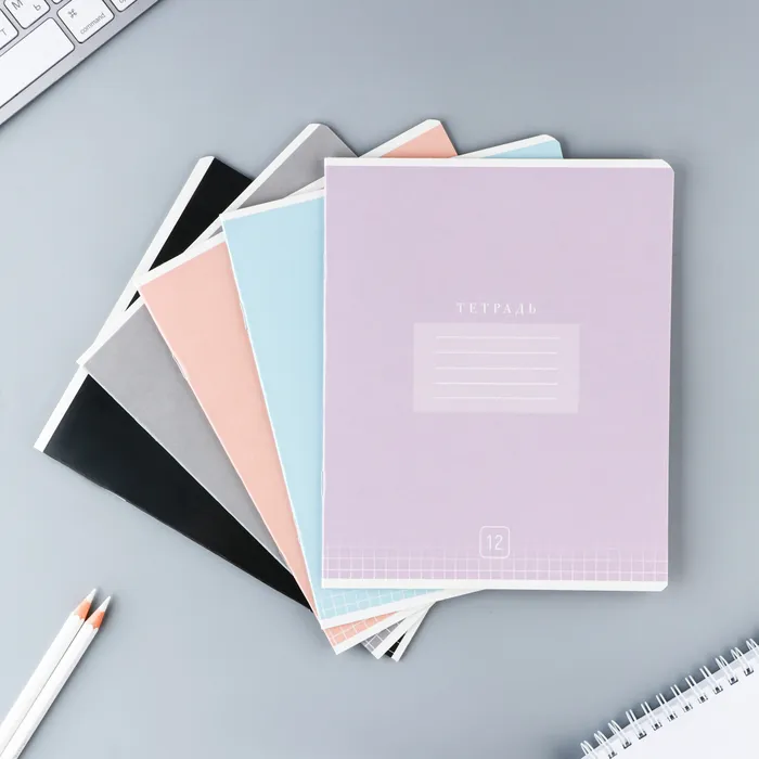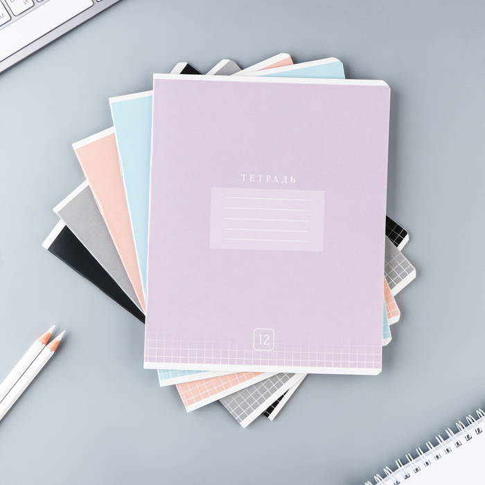Тетрадь в клетку, 12 листов, А5, на скрепке, блок №2 «Цветная обложка» МИКС — Характеристики