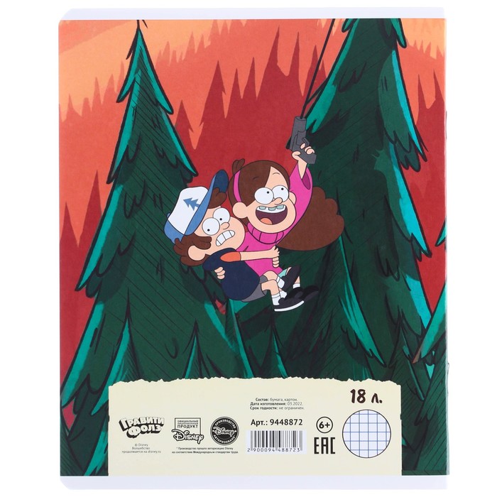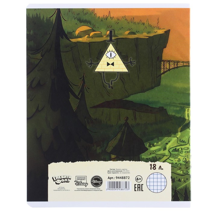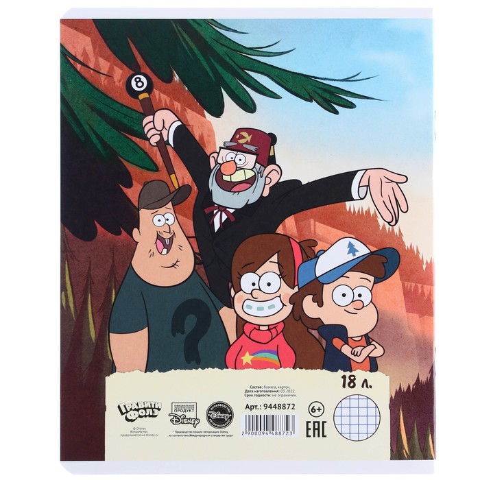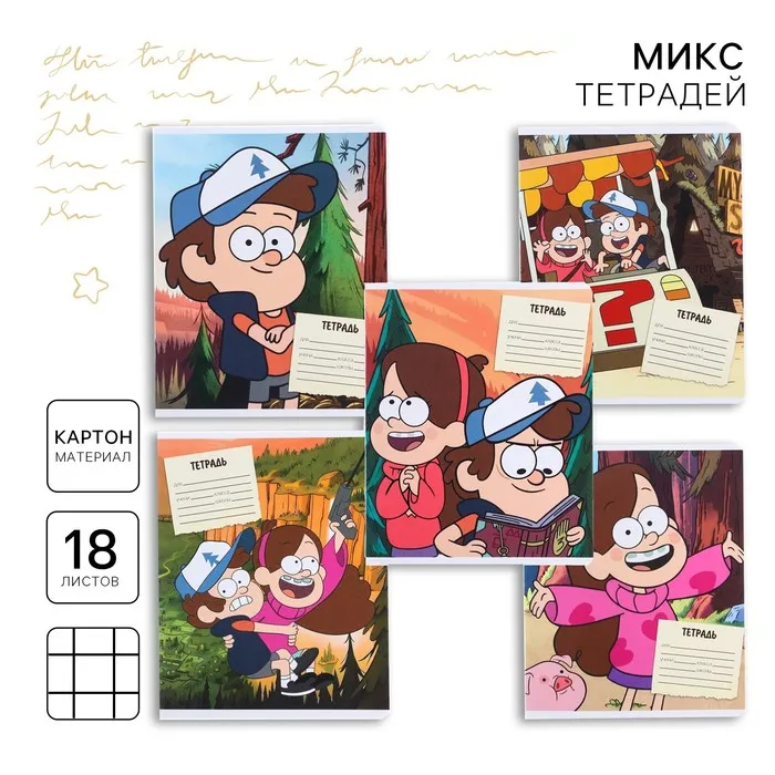 Тетрадь в клетку 18 листов, 5 видов МИКС, обложка мелованный картон, «Гравити Фолз» — Характеристики