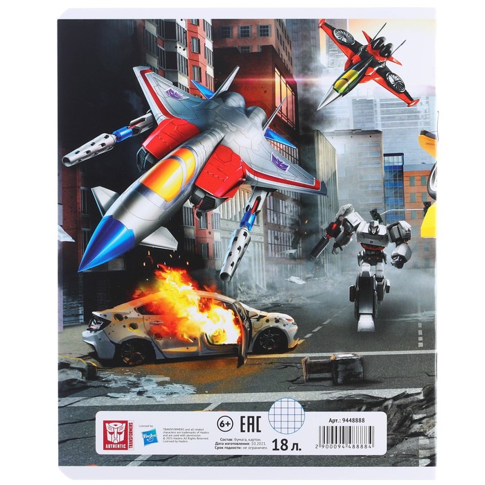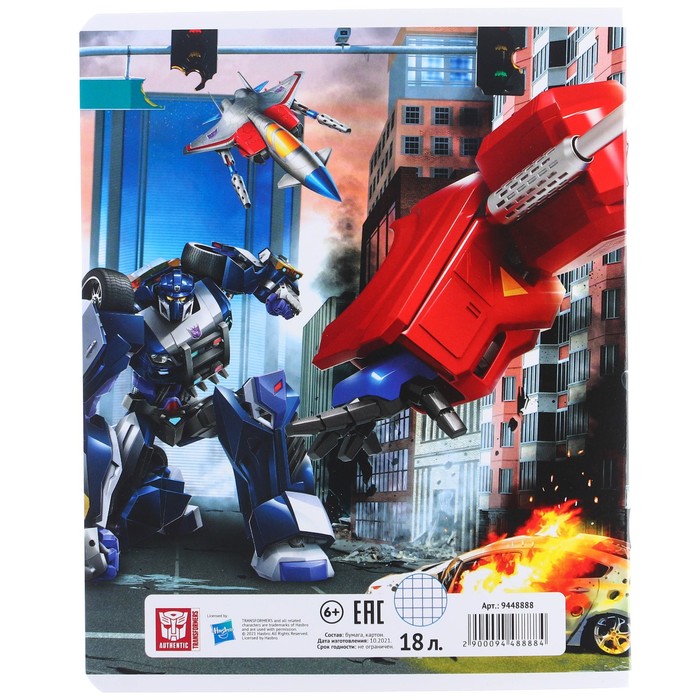 Тетрадь в клетку 18 листов, 5 видов МИКС, обложка мелованный картон, «Трансформеры» — Характеристики