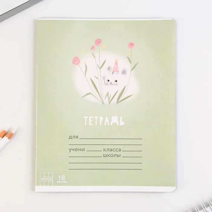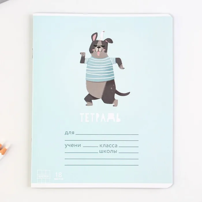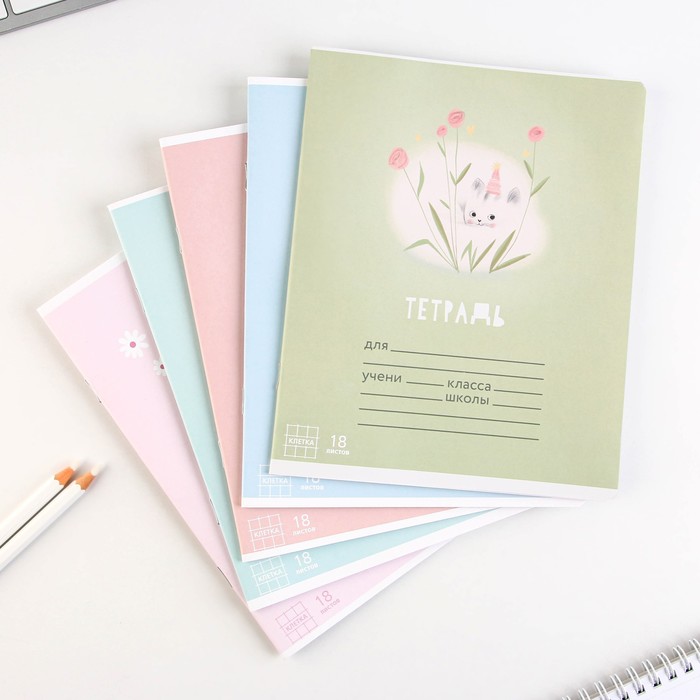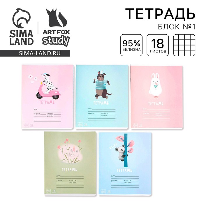 Тетрадь в клетку, 18 листов, А5, на скрепке, блок №1 «Весёлые зверята» МИКС — Характеристики