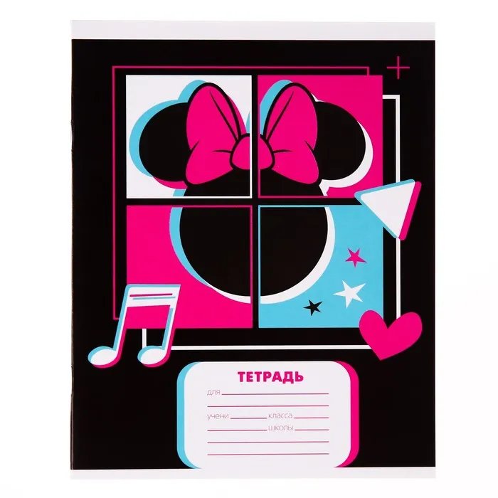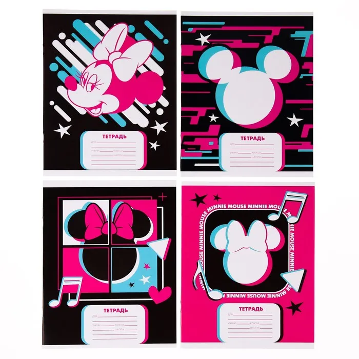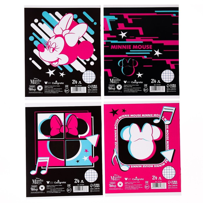 Тетрадь в клетку 24 листа, 4 вида МИКС, обложка мелованный картон, «Минни Маус» — Характеристики