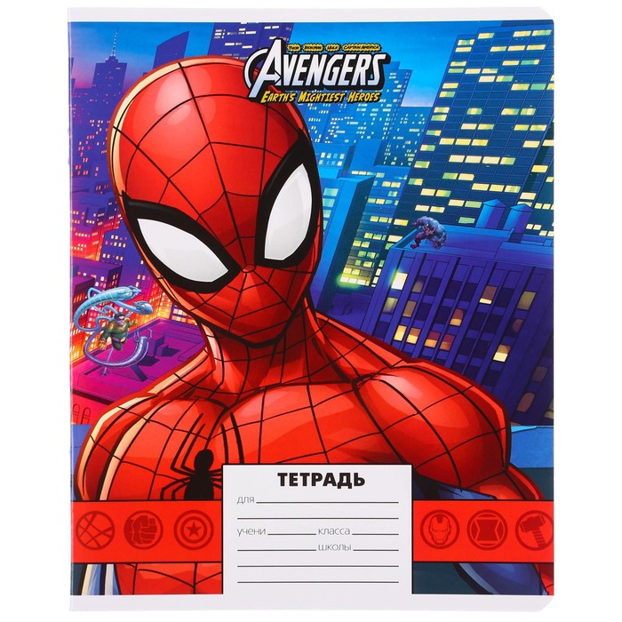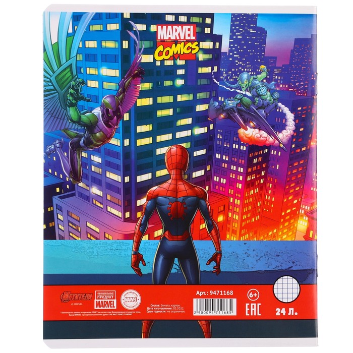 Тетрадь в клетку 24 листа, 5 видов МИКС, обложка мелованная бумага, «Человек-паук» — Характеристики
