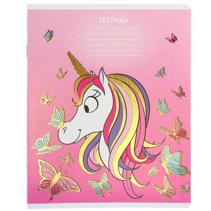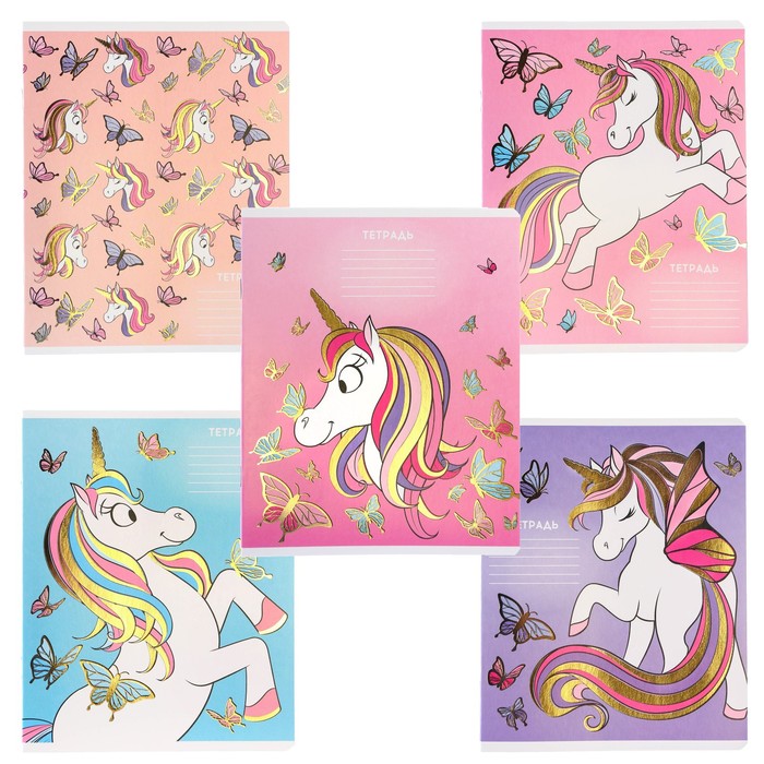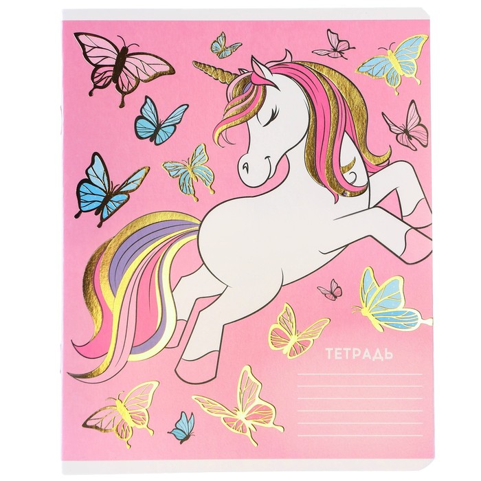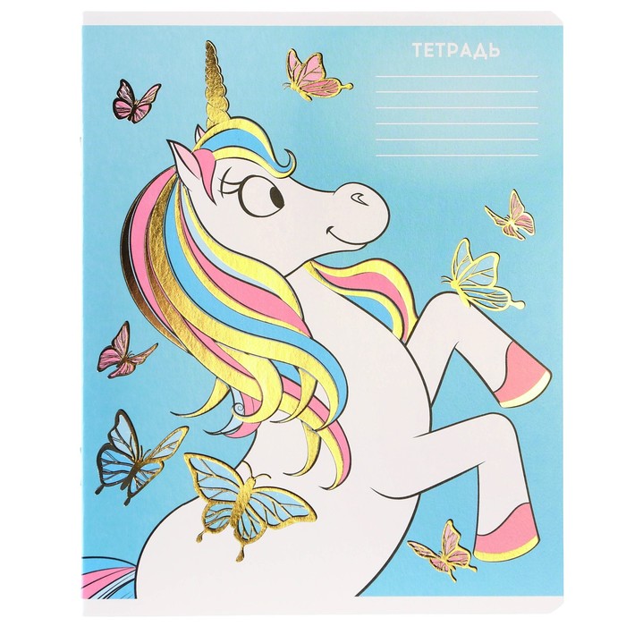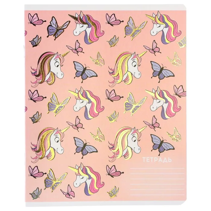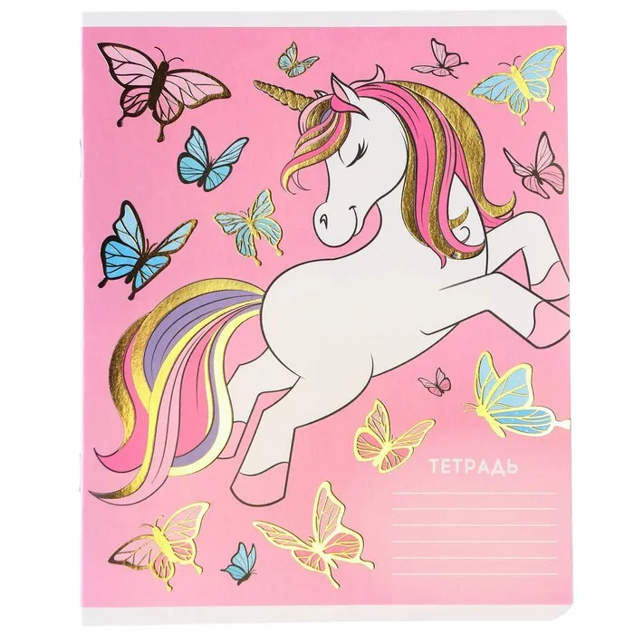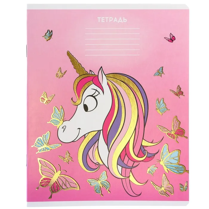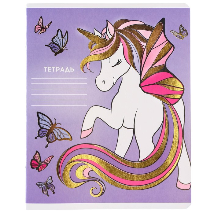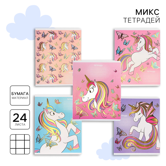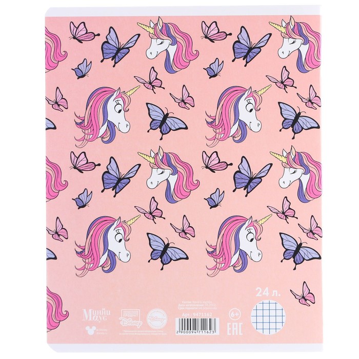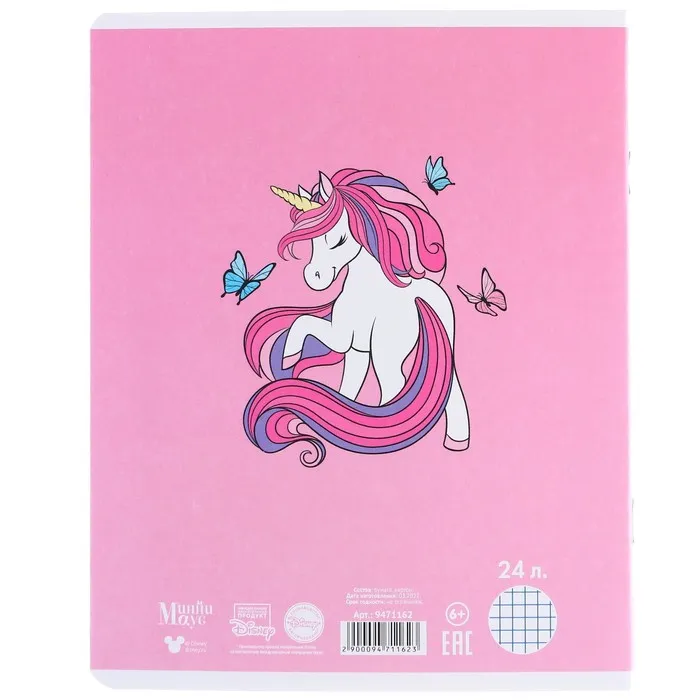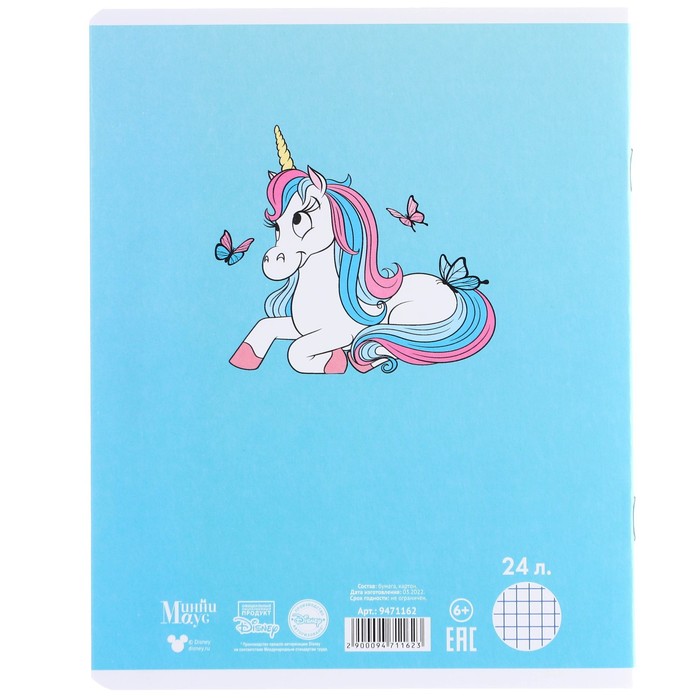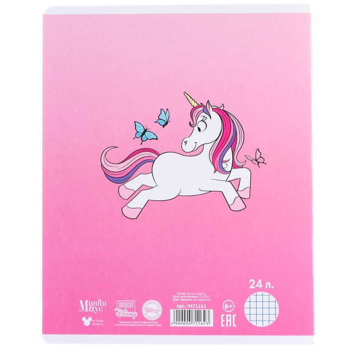 Тетрадь в клетку 24 листа, 5 видов МИКС, тиснение, обложка мелованный картон, «Минни Маус и единорог» — Характеристики