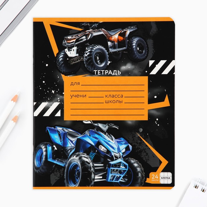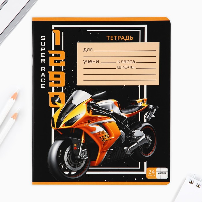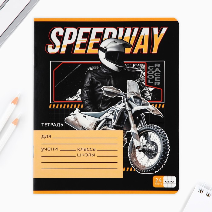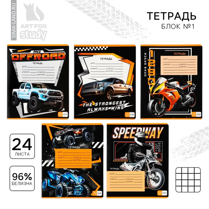 Тетрадь в клетку, 24 листа, А5, на скрепке, блок №1 «Гонщику» МИКС — Характеристики