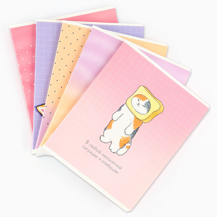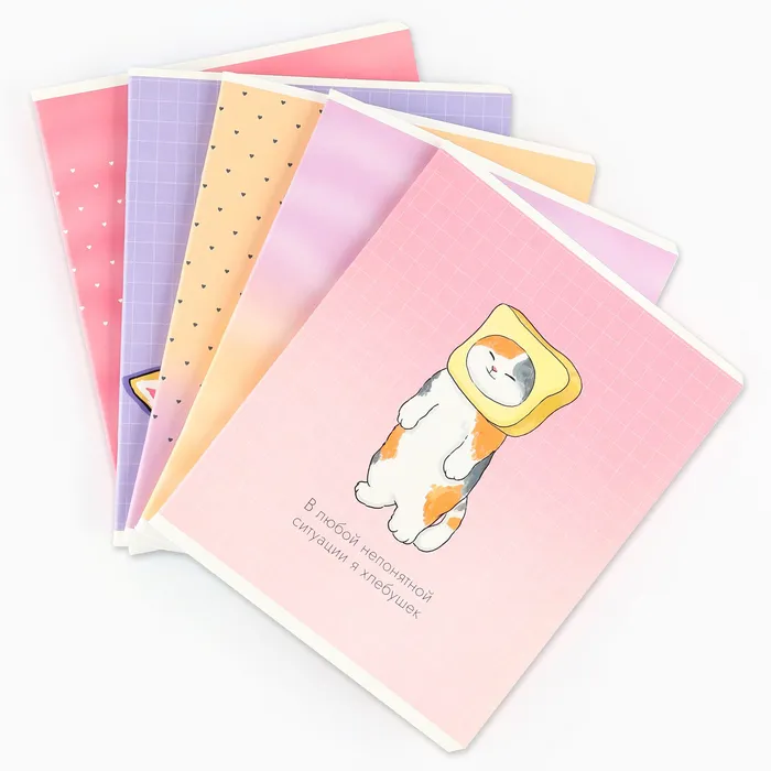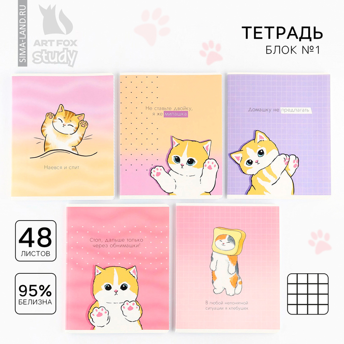 Тетрадь в клетку, 48 л., А5, на скрепке, блок №1 «Котик с лапками» МИКС — Характеристики